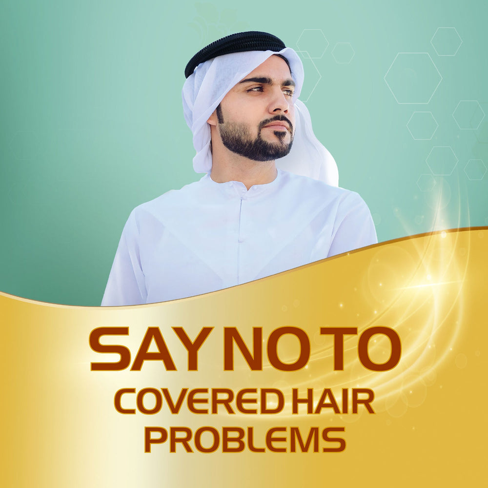 Are you using a regular shampoo? Wearing a ghutra for long time keeps the hair under pressure and leads to sweat accumulation. It causes itchy scalp, dandruff and flat hair, leading to hair damage.