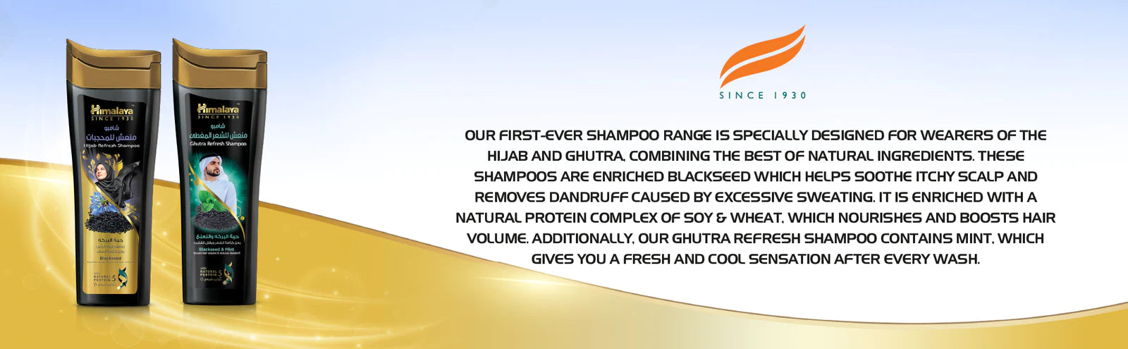 Himalaya’s all new Hijab Refresh shampoo is one-stop solution for all covered hair needs. It effectively cleanses and nourishes the scalp & hair. Carefully chosen ingredients like Blackseed, Soya & Wheat, infused with fresh fragrances gives you an ultimate shampooing experience, leaving your hair soft and smelling great. So, whether you are looking to maintain a clean and fresh feeling throughout the day or seeking a solution for dandruff and hair damage, our Hijab Refresh Shampoo has got you covered.